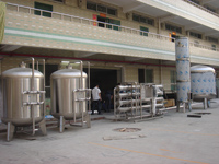产品详细说明: 根据国家纯净水标准对饮用纯净水的水质规定和水源水质的实际情况,本系统采用了机械过滤、活性炭过滤、精密过滤等设备作为预处理,主机为单级反渗透装置或二级反渗透装置,最后通过臭氧杀菌工艺。通过合理、高效的预处理系统去除颗粒、杂质、胶体、余氯以后,再利用高科技的反渗透膜分离技术去除水中的细菌.病毒等微生物和绝大部分对人体有害的重金属等离子,使产品水符合《GB17323-98》国家饮用纯净水标准。 设备优点: 操作简单、维护方便; 系统可为自动或手动运行。 系统排放水不会给环境造成任何污染; 维护费用低、占地多面积小。 设备详细参数: